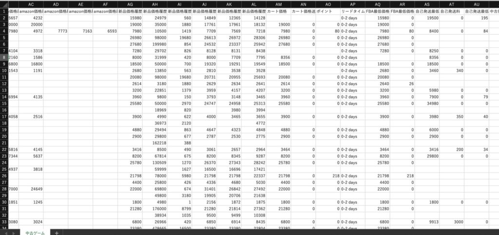 メーカー問屋卸からエクセルでリストをもらうこともあると思いますが、その場合だとJANさえあればこの雷神に突っ込んであげればこの3つのECモールのデータが取り出せるので一個一個手打ちで検索しなくても良いということになります。